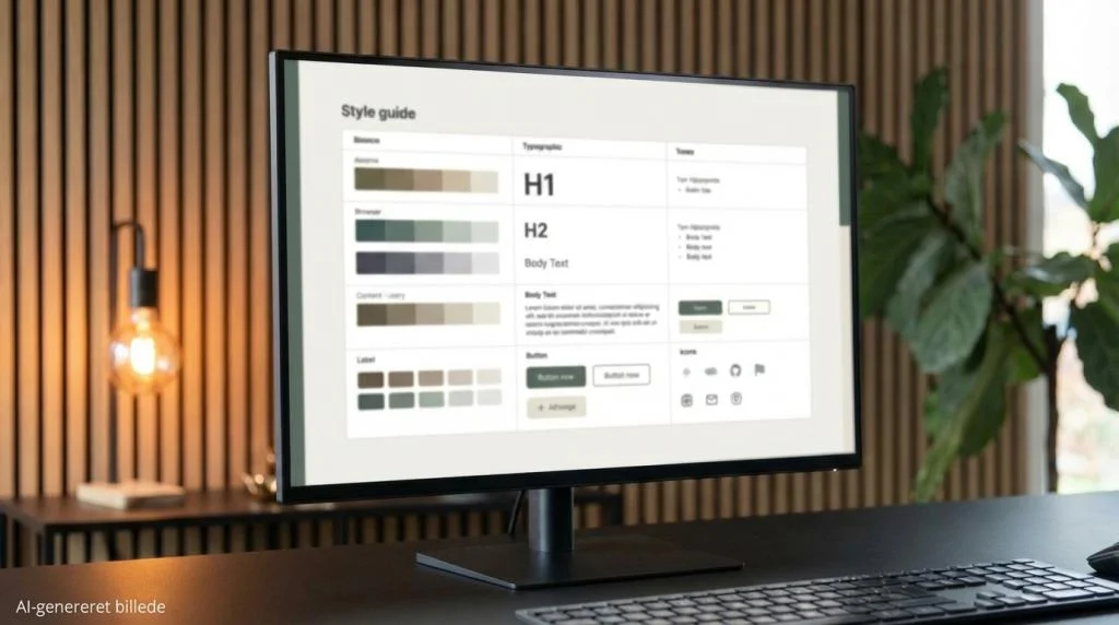 - Fastlæg et lille design-system: Farveroller, typografiskala, knap-stile, ikonregler
